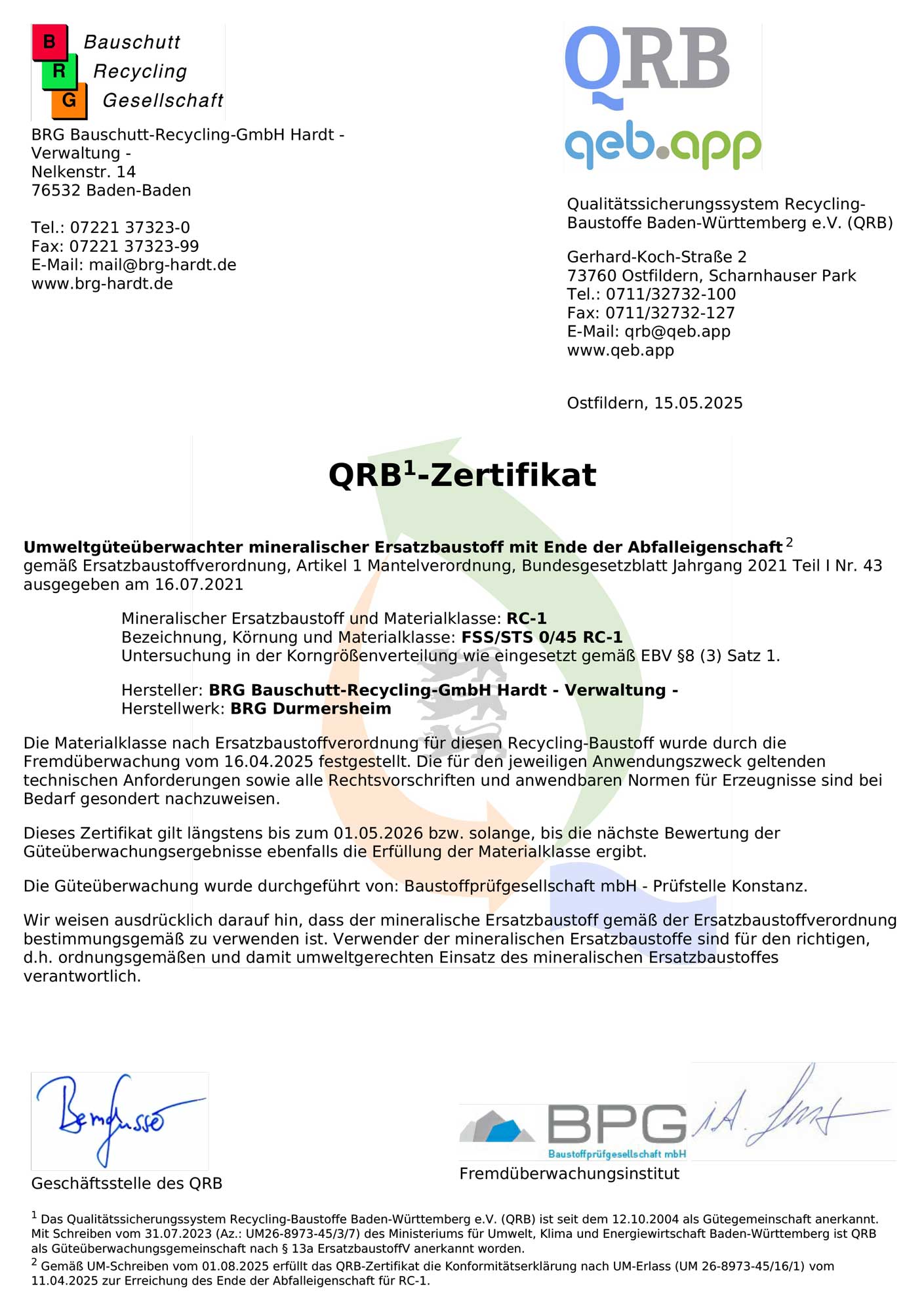QRB Produktzertifikat (PDF Datei):
